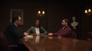Le nouveau film Apple « Slide » (Terrain glissant) réalisé par David Shane met sur la table l’iphone 17 pour prouver la résistance aux rayures de son écran avec Ceramic Shield 2, trois fois plus résistant que le verre des générations précédentes. Dans un face-à-face à la tension palpable, à chaque extrémité d’une table immense, un couple règle les dernières conditions de leur divorce, par avocat interposé avec comme intermédiaire l’iPhone 17. Messager véloce et discret, il glisse écran retourné sur la longue longue table jusqu’à la partie adverse qui le consulte, refuse la proposition et le renvoie dans la foulée. Un suspens et un torture test des plus cinématographiques, à l’efficacité implacable qui invite à être rassuré : Tout va bien c’est un iPhone 17.